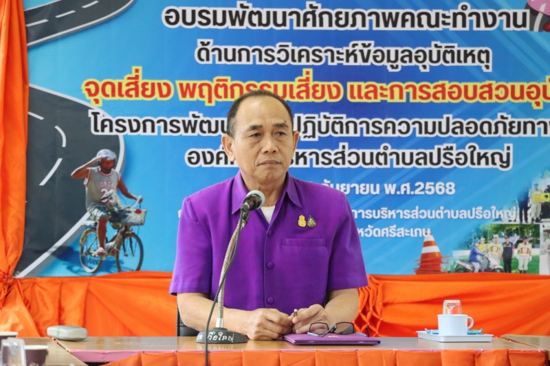 วันอังคารที่ 30 กันยายน 2568 อบรมพัฒนาศักยภาพคณะทำงานด้านการวิเคราะห์ข้อมูลอุบัติเหตุ จุดเสี่ยง พฤติกรรมเสี่ยง และการสอบสวนอุบัติเหตุ โครงการพัฒนาศูนย์ปฏิบัติการความปลอดภัยทางถนน องค์การบริหารส่วนตำบลปรือใหญ่ โดยนายเจตน์จิตร สัมพุทธานท์ นายกองค์การบริหารส่วนตำบลปรือใหญ่ เป็นประธานในพิธีเปิดโครงการ ณ ห้องประชุมทับทิมสยาม องค์การบริหารส่วนตำบลปรือใหญ่ อ.ขุขันธ์ จ.ศรีสะเกษ