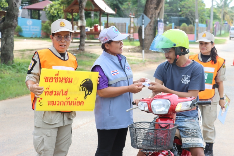ทั้งนี้ ได้ชื่นชมผู้ที่สวมหมวกนิรภัยแจกลูกอม พร้อมประชาสัมพันธ์ให้คำแนะนำกับผู้ที่ไม่สวมหมวกนิรภัยให้สวมในครั้งต่อไป